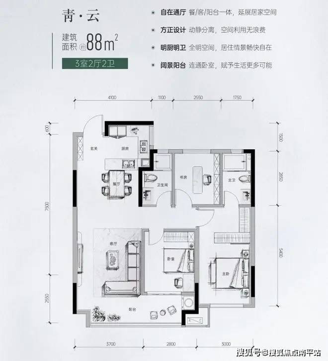 建面约88㎡高质价比优教三房,三面宽朝南搭配约14㎡可拓展阳台,清风无间,阔尺采光难得一见。约16.5㎡套房式主卧,媲美建面约105㎡户型。成长型空间设计,满足初代学龄家庭所需。