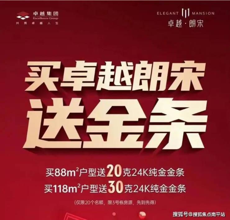 长沙卓越朗宋,国庆钜惠提前享,优惠不用等。购房送金条,最高30克,限3#栋房源,限前20套。首付15万起,配套九年制青竹湖湘一外国语学校。