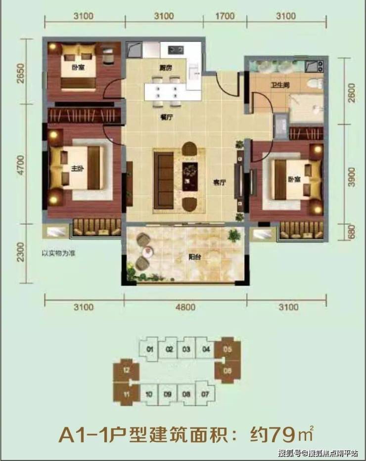 ⭐A1-1户型建筑面积:约79㎡