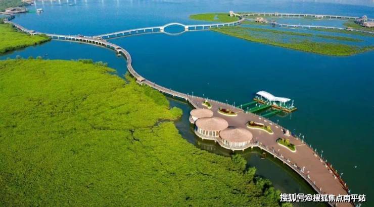 亭台馆阁,水光波粼。“凤凰于飞”塔、“豚之缘”长廊、“游龙”长廊、“望鹭”长廊、“海鸥形”码头......各色南洋风格水榭、造型各异的亭台楼阁,你将会被它的魅力所征服。宽阔的海域、尖尖的草木屋、长长的步栈道延伸入海,从天空俯瞰好像走进了马尔代夫,有种海岛度假的感觉。