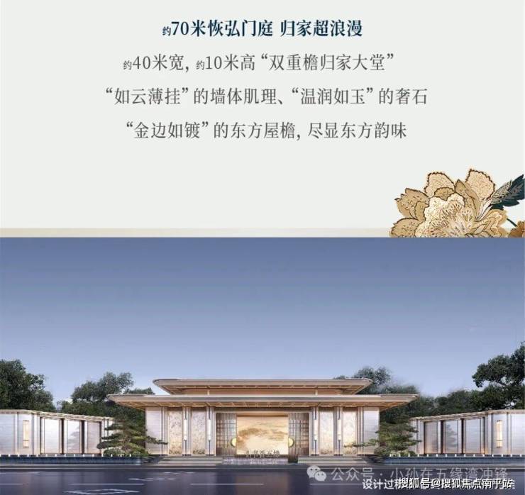 确实把小区园林的设计规格提升了一个等级。可能是觉得园林档次都提了,那大门不得再卷一卷?所以把大门的尺寸拉到了将近70米,顺手还把归家大堂拉到宽40米高10米。