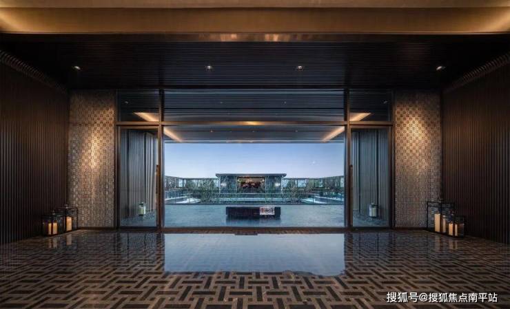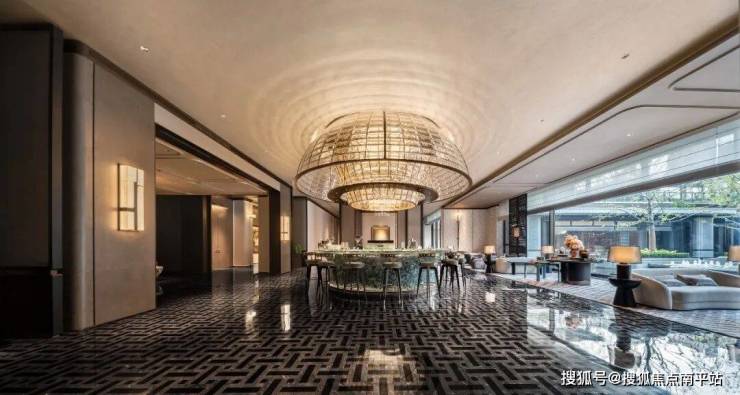 车马院以上海半岛酒店作为灵感来源,在设计方面采用了海鸥丽晶酒店同款的接待门,凸显出尊贵的大家门厅风范;营造社区归家的玄关,下挂式的星空顶、艺术雕塑、迎宾叠水以及范思哲黑背景墙相互映衬。