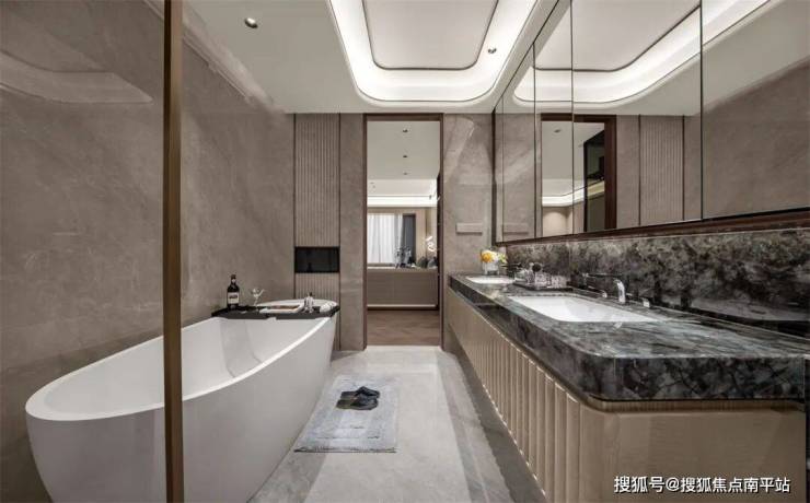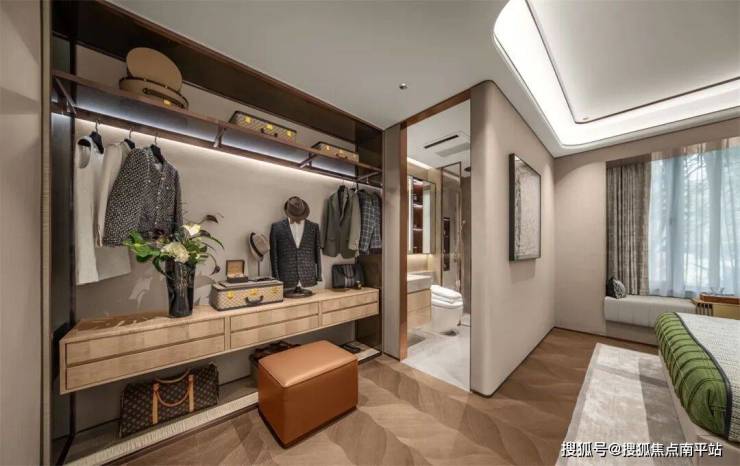 ●约32㎡星级套卧尺度豪横,坐拥 大采光面观景飘窗、双倍扩容的 步入式衣帽间,还能隔出办公区,加上配备 双台盆+大浴缸的阔绰卫浴空间,奢适体验可媲美五星级酒店,更匹配层峰人士的气场。