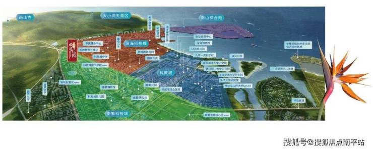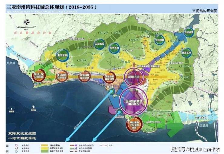 双港包括南山港和中心渔港;双城包括崖州湾科技城重点片区(包括南繁科技城、深海科技与大学城、崖城综合服务区)和崖州古城;五组团包括南山佛教文化圣地组团、梅山山海公园组团、保港科技预留组团,以及梅山、镇海远景发展组团。