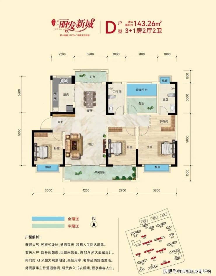 加赠送得房率高达92%,户型方正南北通透,南向7米瞰景大阳台,宽景飘窗主卧,足不出户聆听鸟语花香。