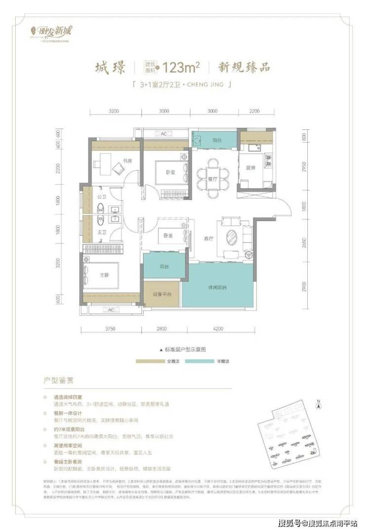 市场罕见2T3H、2T2H纯板式设计。超高赠送面积,多阳台、多飘窗设计,舒居首选。106-125-132-143-165㎡全龄户型,方正实用。