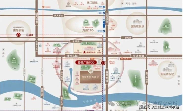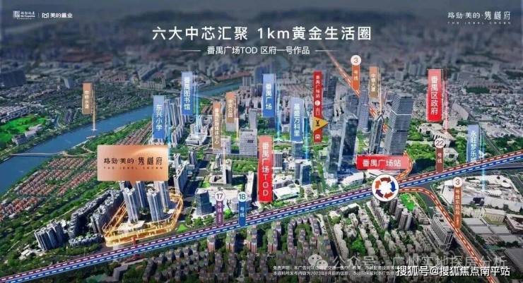 项目距离地铁站3号线番禺广场站约800-900米,在这里有4条地铁交汇,分别为18-22-3号线,还有规划中的17号线,去珠江新城、琶洲都是直达。自驾的话,项目周边有番禺大道,南沙港快速等线路,交通还是蛮便利的。