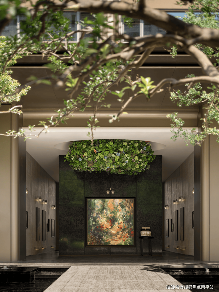 单元间的入口被布置成了一场名为“繁盛花园”的当代艺术画展,每一幅画作都是一处绽放的花朵,每一道笔触都勾勒出生命的灿烂、多样与变换。生命的情感以及自然的力量融汇于一体,成为心灵与艺术的交汇处。