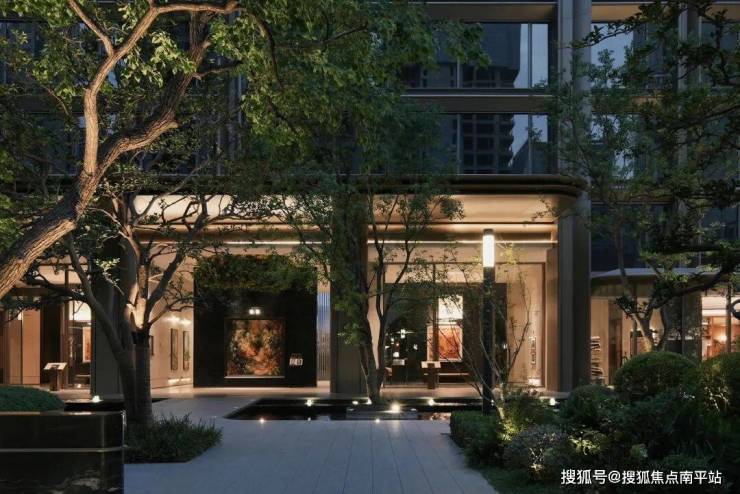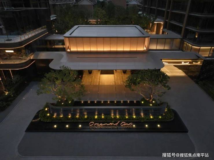 项目入口处打造酒店式落客流线,入口处约8米悬挑雨篷提升了门庭前场的气势,展现了高门大户的尊贵气度。