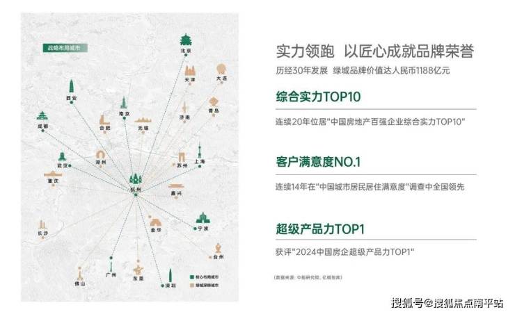 30载绿城,拓耕200余城,营造1000余座美丽家园,超5300亿元总资产规模,超1000亿元净资产规模,1188亿元品牌价值,著下经典无数。(截至2024年12月)