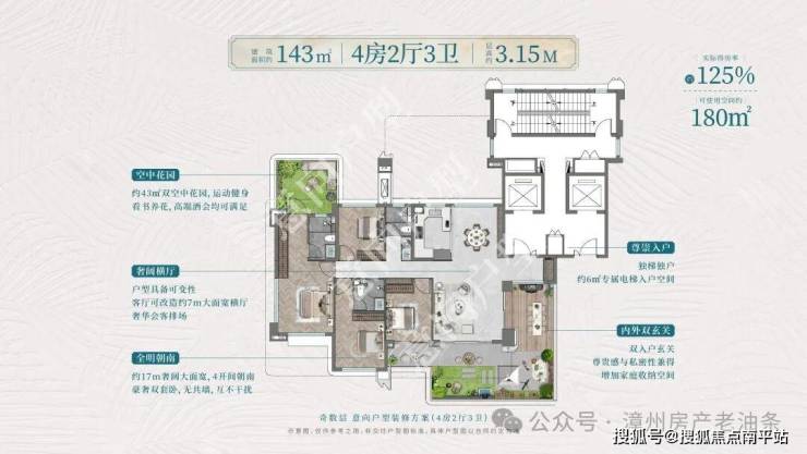 179平做四房可改五房!客厅面宽约5.5米,奇数层露台延伸客厅面宽可达9.2,层高3.15米
