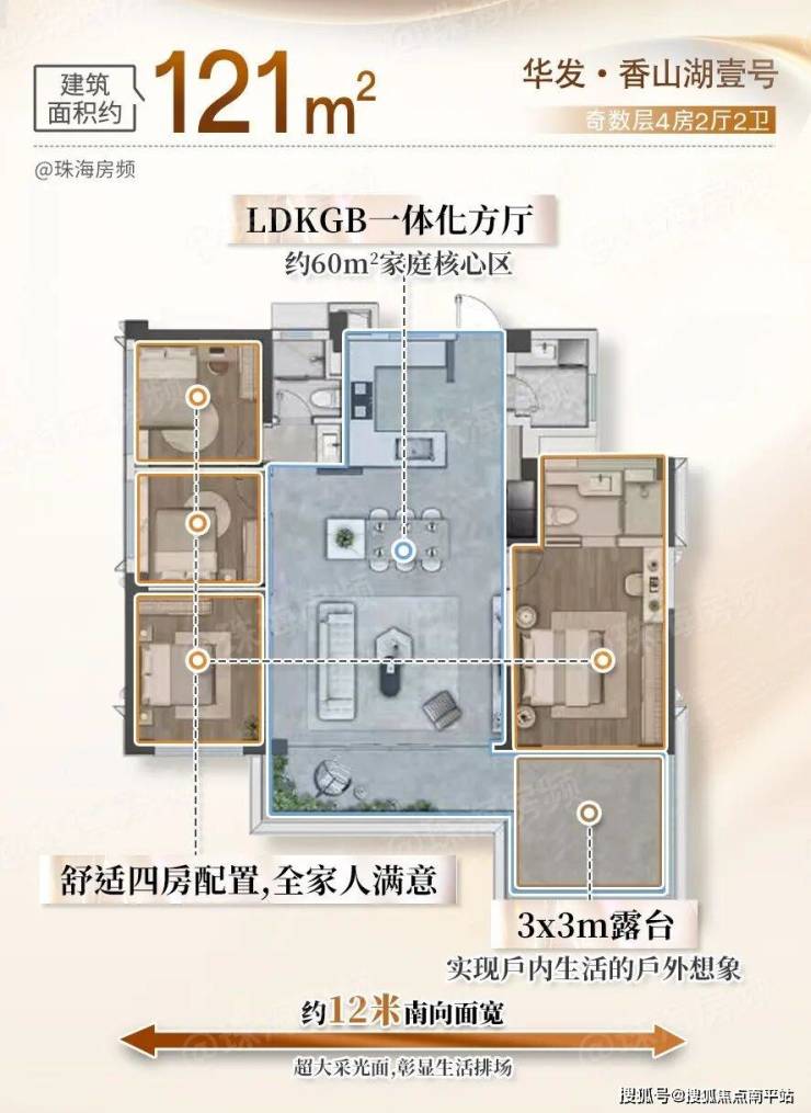 ·约121㎡户型:4房配置,主卧享私属露台