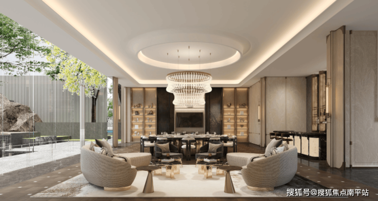 LDKGB一体化厅区设计,面积直逼100㎡,化身奢豪社交主场,无论身处客厅、餐厅或厨房,皆能感受空间带来的包容感与自由度。