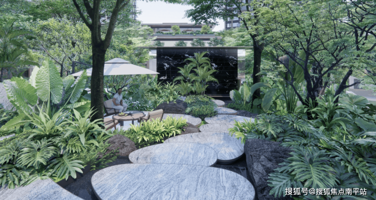 依原生地势打造的园林,独创近11米高差的立体森谷,借势而为,以退台、浮桥与林境,营造出层层递进的沉浸式景观。