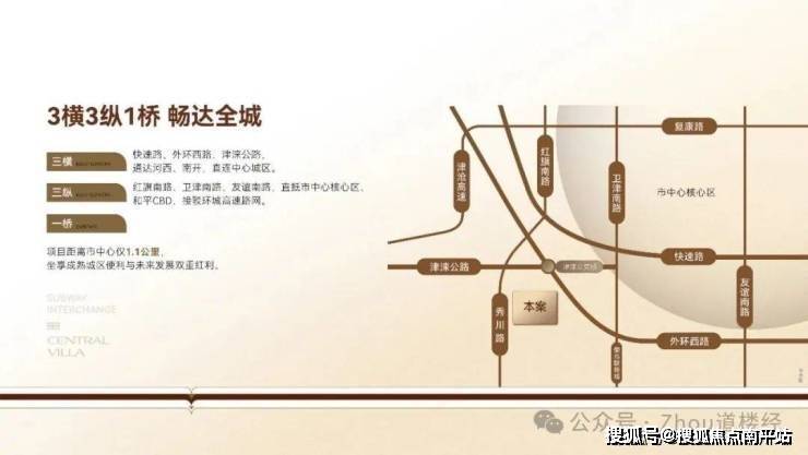 三纵:红旗南路、卫津南路、友谊南路,直抵和平等市中心,接驳环城高速路网