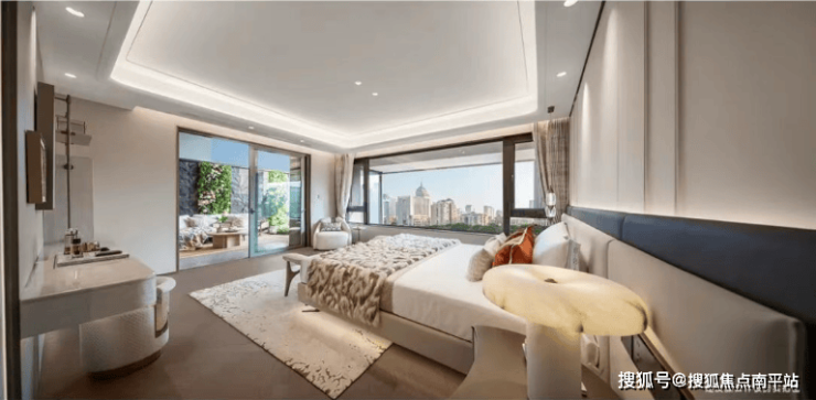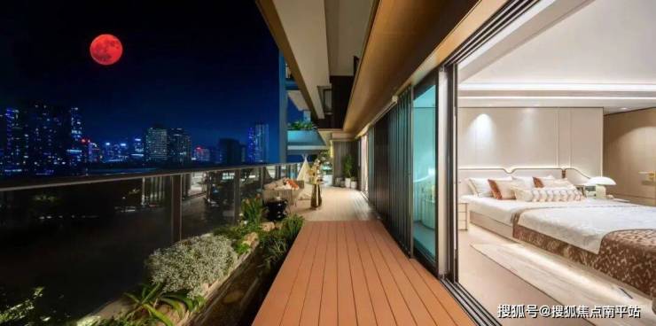 夜晚,主卧套房与露台相连的设计,让您躺在床上也能欣赏星空。