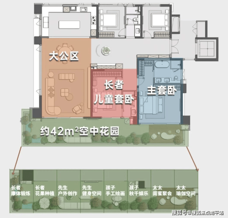 传统大平层虽能提供观景阳台,但功能单一,多沦为晾晒空间。而灏云的空中庭院却能打造出一个可种植、可社交、可瑜伽的立体生活场域。
