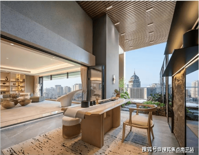 这不是简单的阳台扩大,而是将别墅的庭院功能垂直植入高空,实现了从“观赏自然”到“生活在自然中”的质的飞跃。