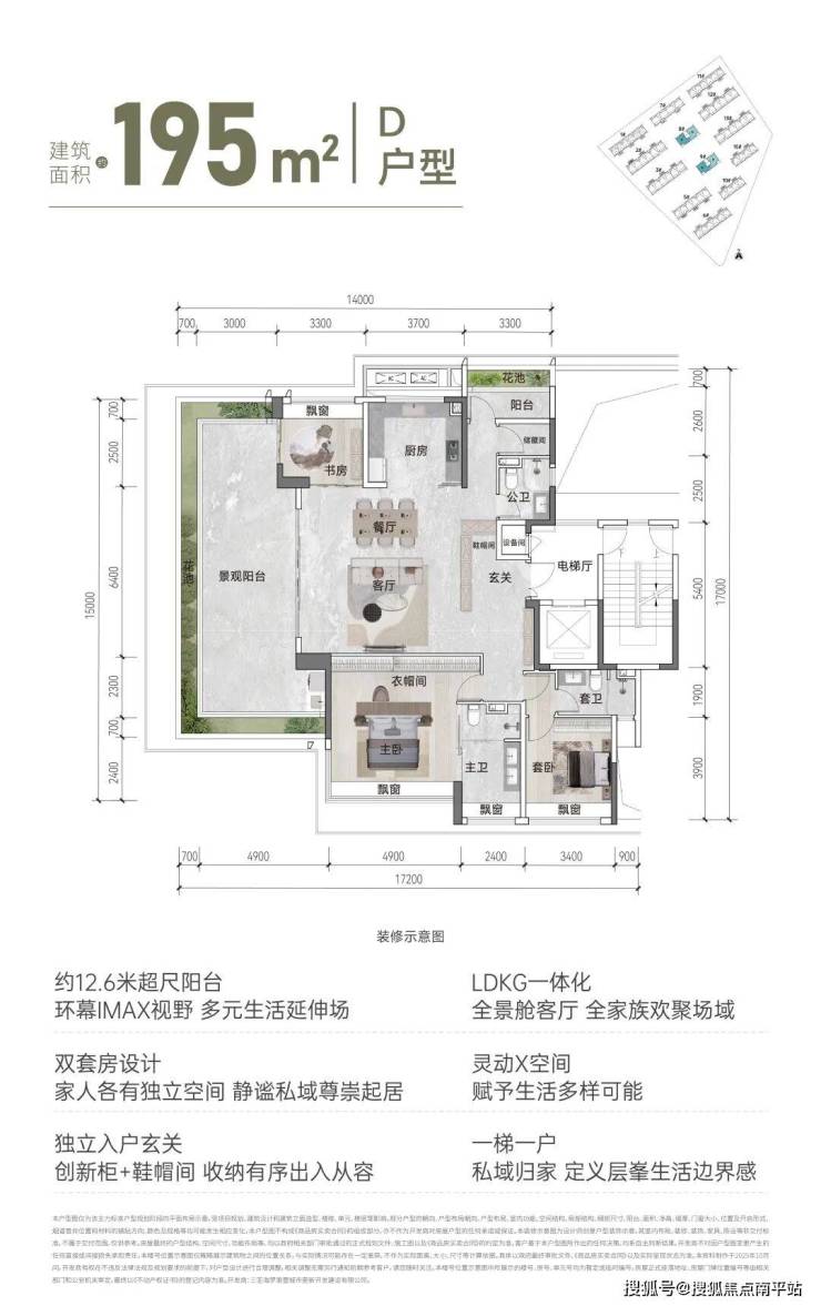 【面积区间】建筑面积约110㎡、131㎡、143㎡、195㎡