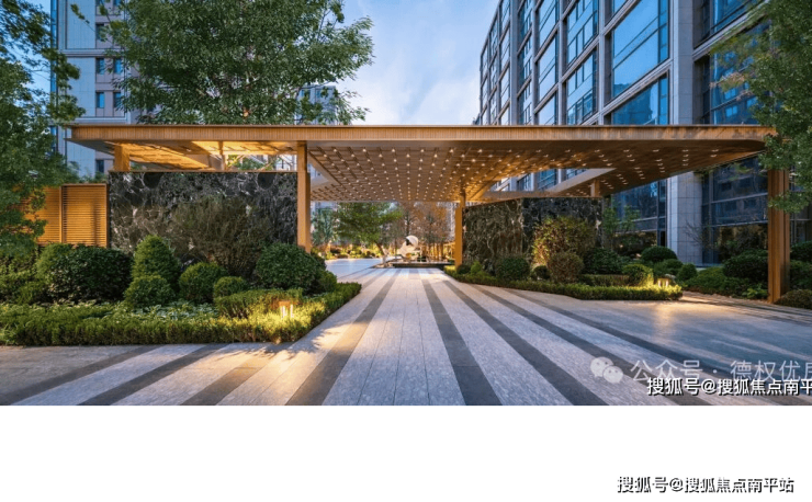 5、五进礼序——构建高雅艺术的多功能自然邻里空间;屡迹全球,遴选十数种世界鼎级奢石,园区奢石使用率达90%,营造奢隐美学艺境;约6500m²奢隐园境中,种植上百种植被,让鲜氧盈满日常;园区中央,孤植一棵约300多年的青檀古树全冠移栽,守望家族传承。