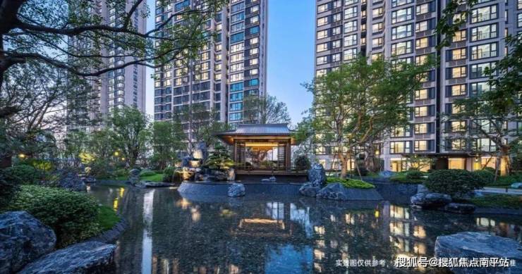 社区规划采用矩阵围合式布局,建筑南低北高,既保证了楼间距和采光,又创造了丰富的空间层次感。楼栋间距控制在28-50米之间,形成通风采光良好的中庭空间。园林设计采用新中式禅境风格,规划约3万平方米景观空间,包含泳池、全龄活动区及4000平方米架空层泛会所(含健身房、茶室等)。社区实行人车分流设计,配备约1408个停车位(车位比1:1.01),绿化率达30%,容积率3.1。