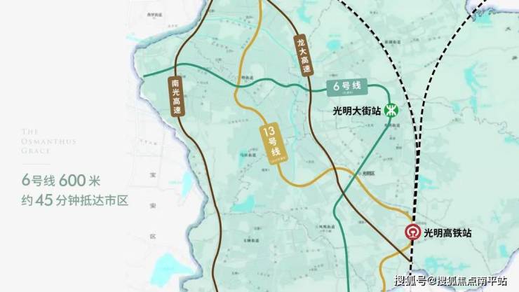 光明布局规划“一心两区”,“一心”即光明中心区,建设科学城的生活服务中心,集聚商业、居住、大型公共服务设施等顶级配套。