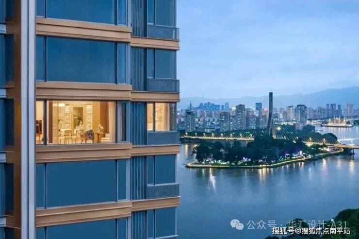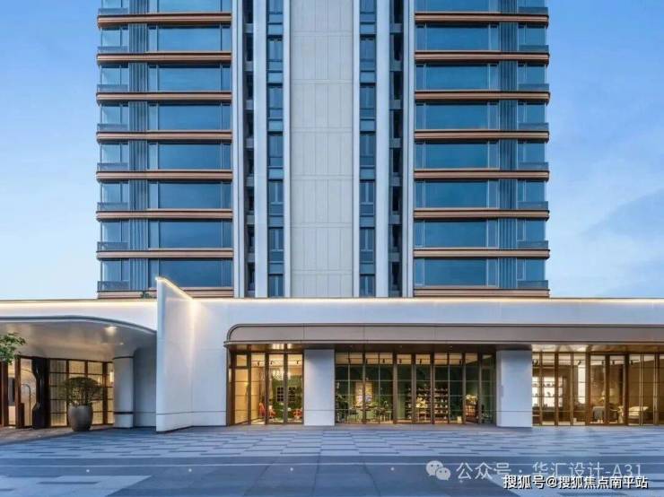 6.6米宽幅玻璃幕墙,最大化采光与观景。底层架空泛会所设计,模糊社区和城市、闽江的边界,社区入口和入户单元大堂打造成海派酒店式入口风格,沿街打造海派摩登街区,营造那种“烟山华灯、沁染闽江”的温情人文场景。楼栋架空层提供互补式场景:静雅书吧 + 私宴厅+茶室+儿童乐园等,强化社区社交属性。
