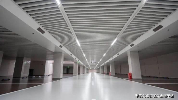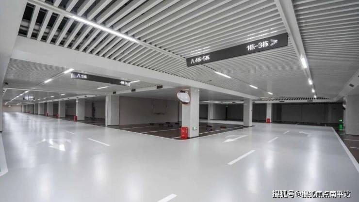 第二,车库层高约3.9米,车库顶部全部为铝格栅吊顶交付,同时搭配线性灯带,使得车库更明亮;并且车位标识明显,位置也很宽敞可以预留充电桩车位,避免电车业主加装充电桩的麻烦以及安全隐患。