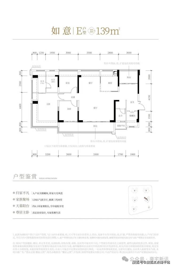 创新型成长户型,适应家庭不同阶段的需求变化,拔墙设柱设计、分户S墙、创新LDKC内外亲子双区等