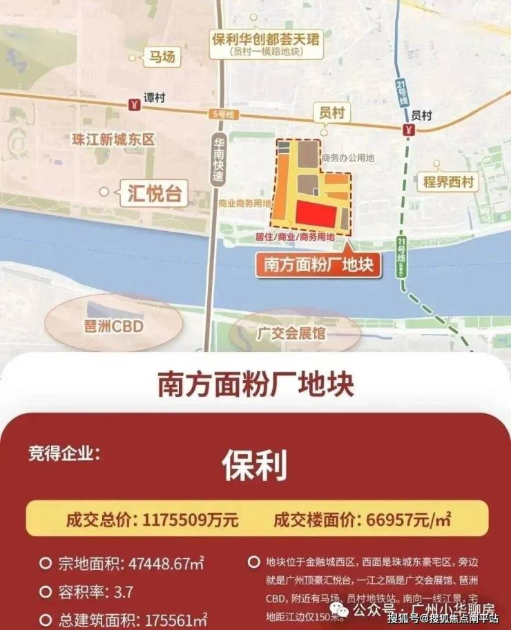 这也是继地价榜第四的员村一横路地块(现保利华创都荟天珺)后,保利在珠江新城再下一城,顺手创造了天河地王。