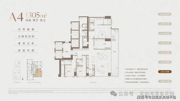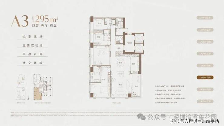 一席藏尽海/湖/园/城,四重盛景,踞守深圳湾畔约270°环瞰海景壮阔、湖境悠然、园景森氧、城脉璀璨的封面地脉。近享深圳人才公园,占地77万平方米,内湖面积约32万平方米,"公园生活圈"步行可达。(信息来源:深圳人才公园公众号)