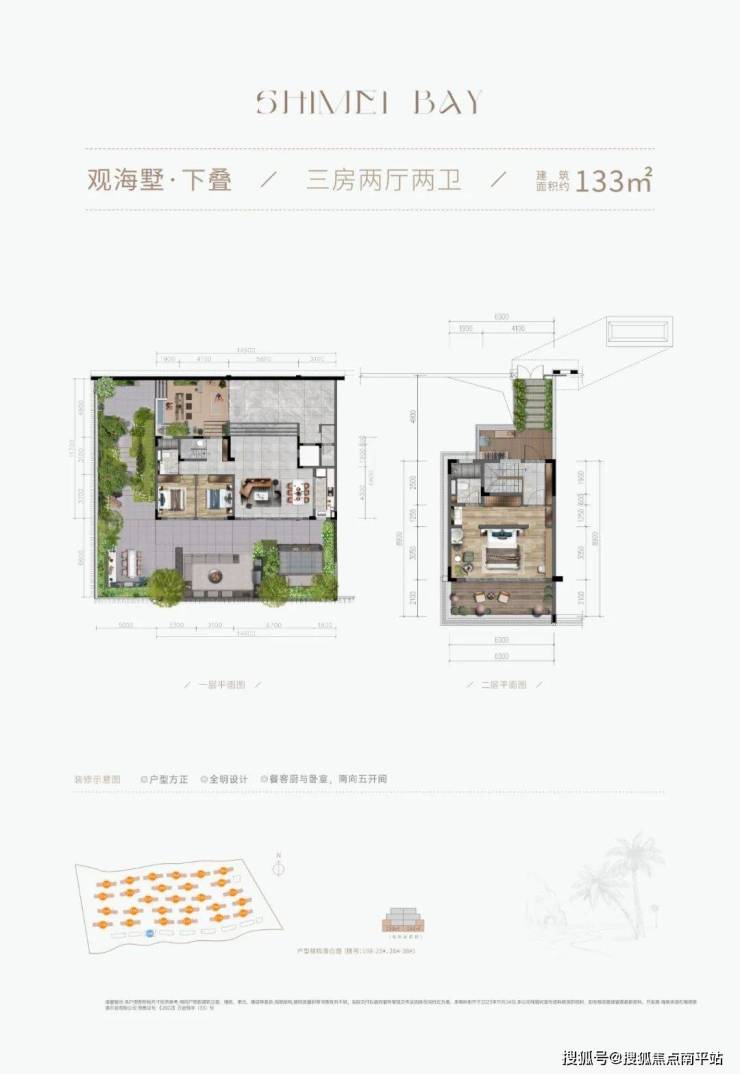 |建筑面积约133㎡○户型方正,全明采光,让海风阳光自在穿行○约8.5m阔景横厅,度假姿态尽显○LDKB专享度假感格局,清晰分区○主卧套房,连接约6m度假阳台,舒阔有度○南向四开间,阳光在家里尽情撒欢○朗阔花园,独立入户,住进自然里