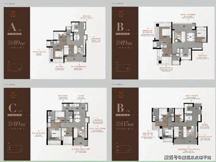 两栋住宅共有房源377户,其中有保障房116户,回迁房17户,剩余可售商品房244户,户型为建面约89㎡3房2卫,115㎡4房2卫。