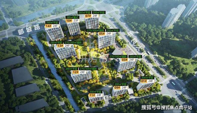 项目共打造10栋23-24层住宅,共432套房,主力户型建面约200-385㎡,其中平层户型有:200、260、280㎡;挑空户型有270㎡和300㎡,385㎡的是复式户型。