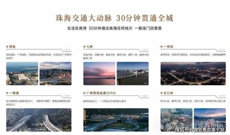 项目位于南湾核心地段,依托珠海大道、金琴快线等主干道,10分钟直达横琴,30分钟覆盖珠海主城,并可快速连通港澳,兼顾高效通勤与跨境生活便利。