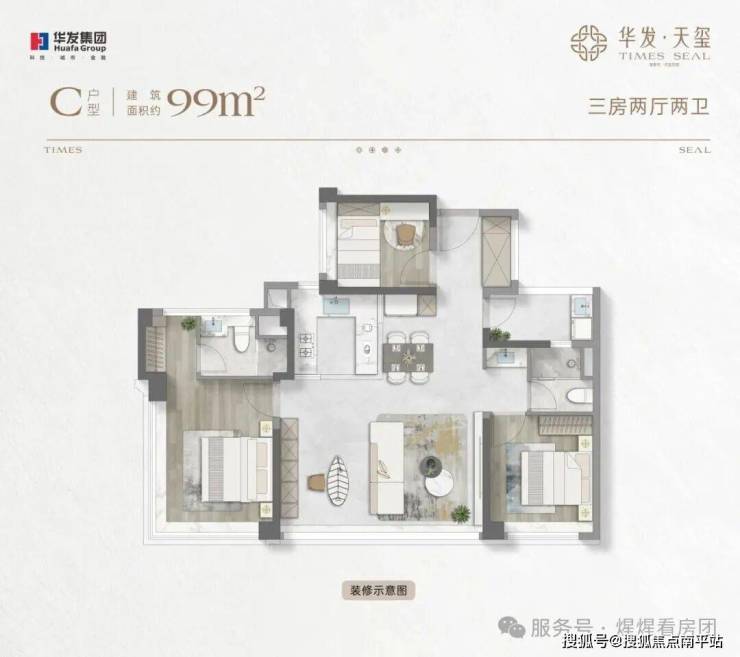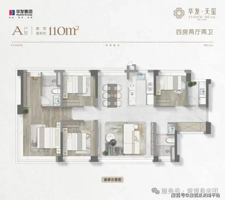 华发・天玺紧扣市场对“实用空间”与“居住品质”的需求,全系户型采用四房两卫布局,99㎡即可实现一步到位。首推5栋建面约99-110㎡户型,实得率约110%,为南湾片区最高。