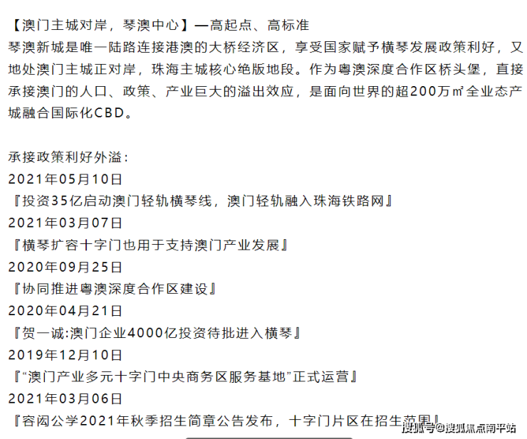 地段优越:位于十字门 CBD,与澳门、横琴隔海对望,是粤港澳大湾区重要节点,发展潜力大。