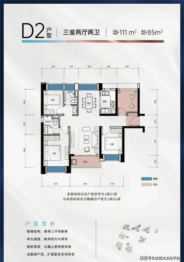 户型实用:有建面约 50-111㎡一至三房多种户型,部分户型南北通透,空间利用率高。