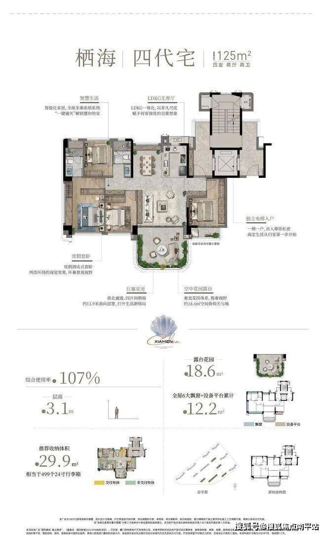 125㎡∶四房两厅两卫第四代洋房,赠送入户