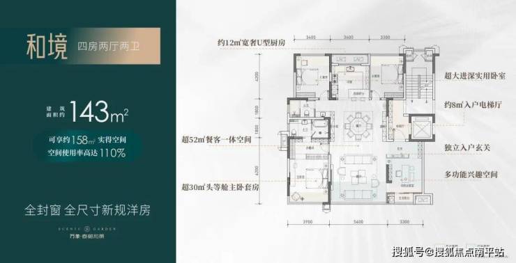【四房两厅两卫】建筑面积约:143㎡;实得面积约:158㎡;实际得房率110%;,相当于旧规186㎡!(旧规户型按85%得房率计算,仅供参考)