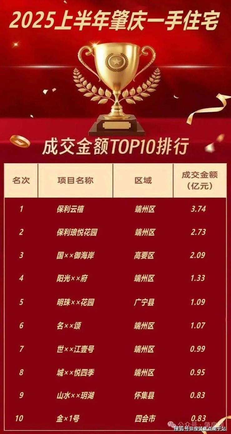 打开新鲜出炉的2025年肇庆一手住宅网签排行榜,没有悬念,保利一以贯之的强势霸榜,端州的保利云禧、保利琅悦双盘跑出独立行情,分别以3.74亿元和2.73亿元,登上全市销榜冠军和亚军的宝座。