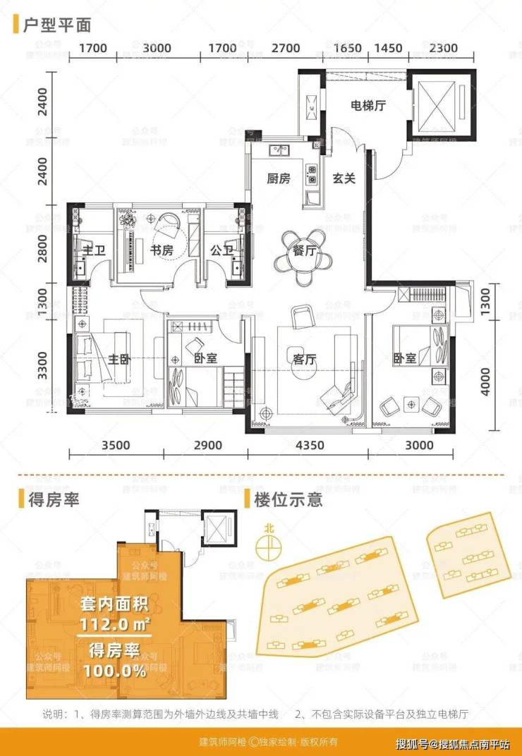 112㎡户型同样是四房两卫,套内面积112㎡,得房率100.0%。