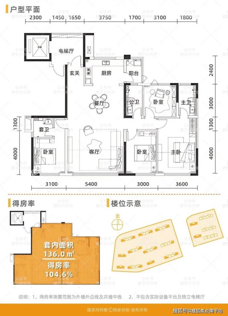 136㎡的户型同样是四房三明卫,套内面积136.0㎡,得房率104.6%。☎免费热线☎️☎️400-159-8559转接7777【☎营销部电话已认证】