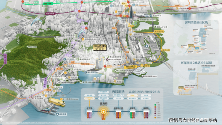 视野聚焦,望海玥所在的深圳湾公园G区,定位为 “深圳湾艺术海岸带”,以 深圳歌剧院(在建)、渔人码头(规划改造中)两大文化地标为主导,为高净值人群打造顶尖的文化休闲体验。与 海上世界文化中心、K11 HACC多功能文化空间等10座文化配套形成组团,成为深圳湾情绪价值最高的区块。