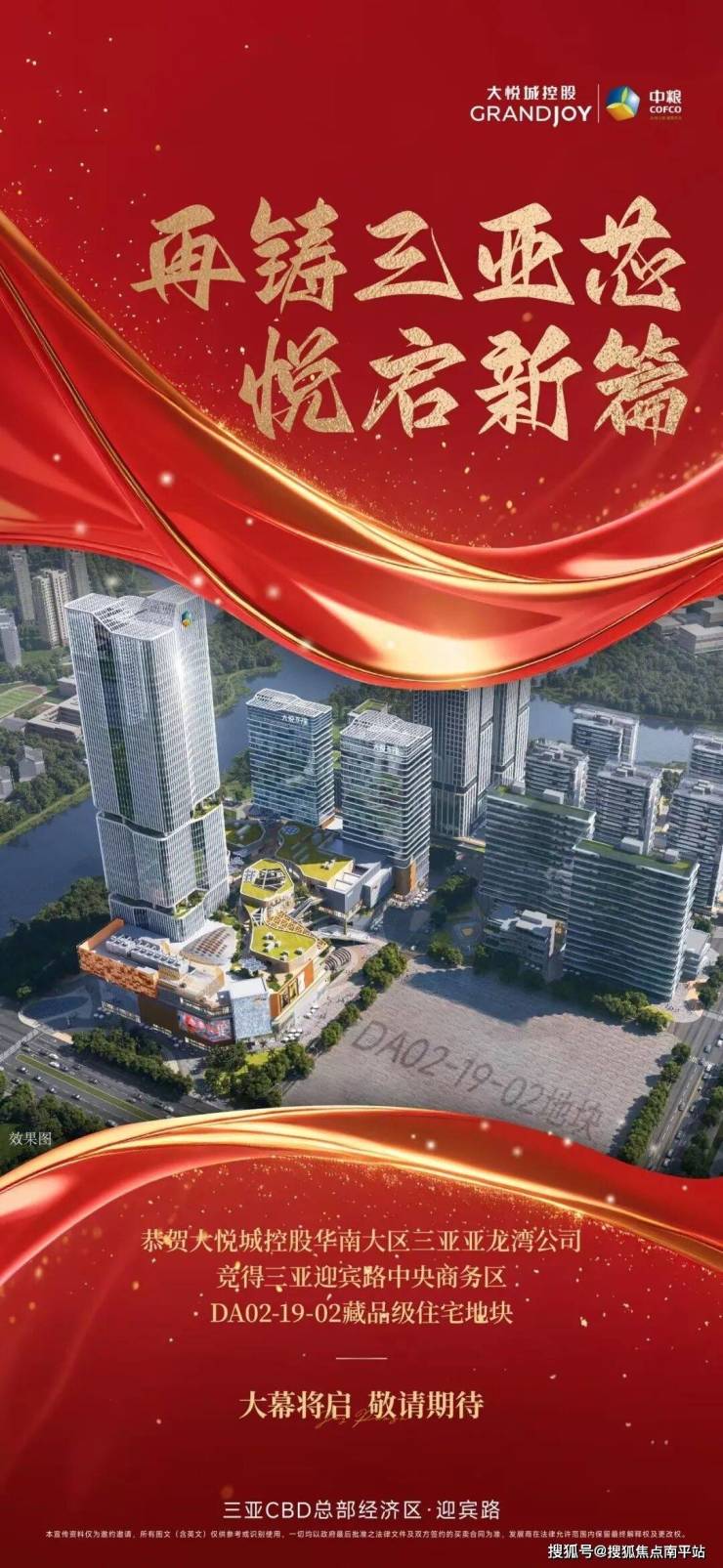 2024年11月,中粮集团斥资7.25亿元成功竞得三亚中央商务东岸单元DA02-19-02地块。