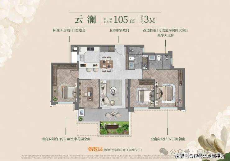 小户型侧重 “空间扩容”:95㎡户型实现 4.5 开间朝南,赠送约 26㎡空间(相当于一个标准主卧),实际使用面积接近传统住宅 128㎡;