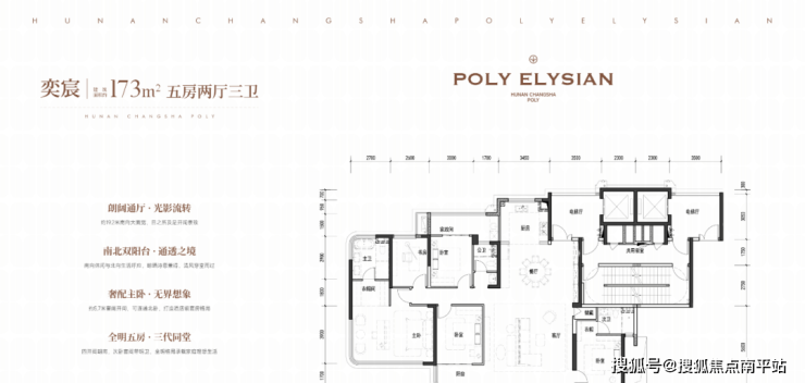 第三款:建面173㎡五房两厅三卫 ,得房率约108%,套内面积187㎡,多孩家庭、三代同堂的“福音”!这款户型空间充足,五房设计,既能满足多孩家庭的居住需求,又能留出一间书房、玩具房或者客房,实用性拉满。