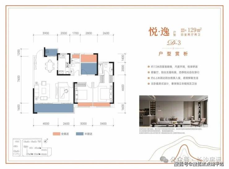 🏡灵动户型项目主力产品为约98-142㎡灵动空间,在售1#栋约98-129㎡户型,配以南向景观大阳台,拥有良好的自然采光与通风,动静分区明晰,餐客厅一体化,空间宽敞、大气,空间利用率高。