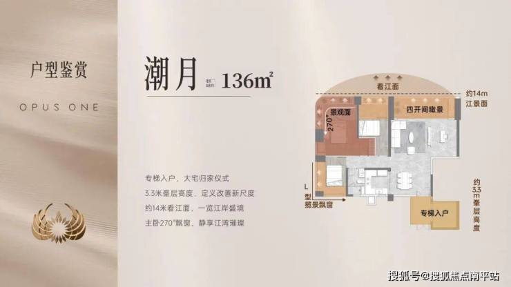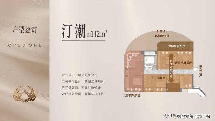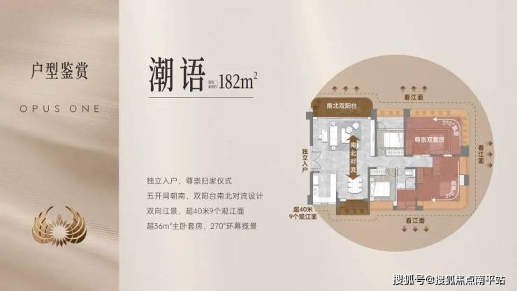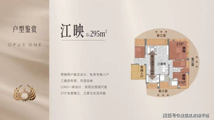 ◦ 楼栋45°偏转+板楼布局,高低楼层均享江景。