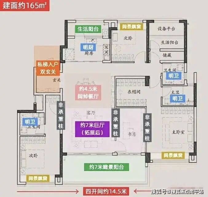 格局:南北通透、双套间、大阳台、电梯厅私属